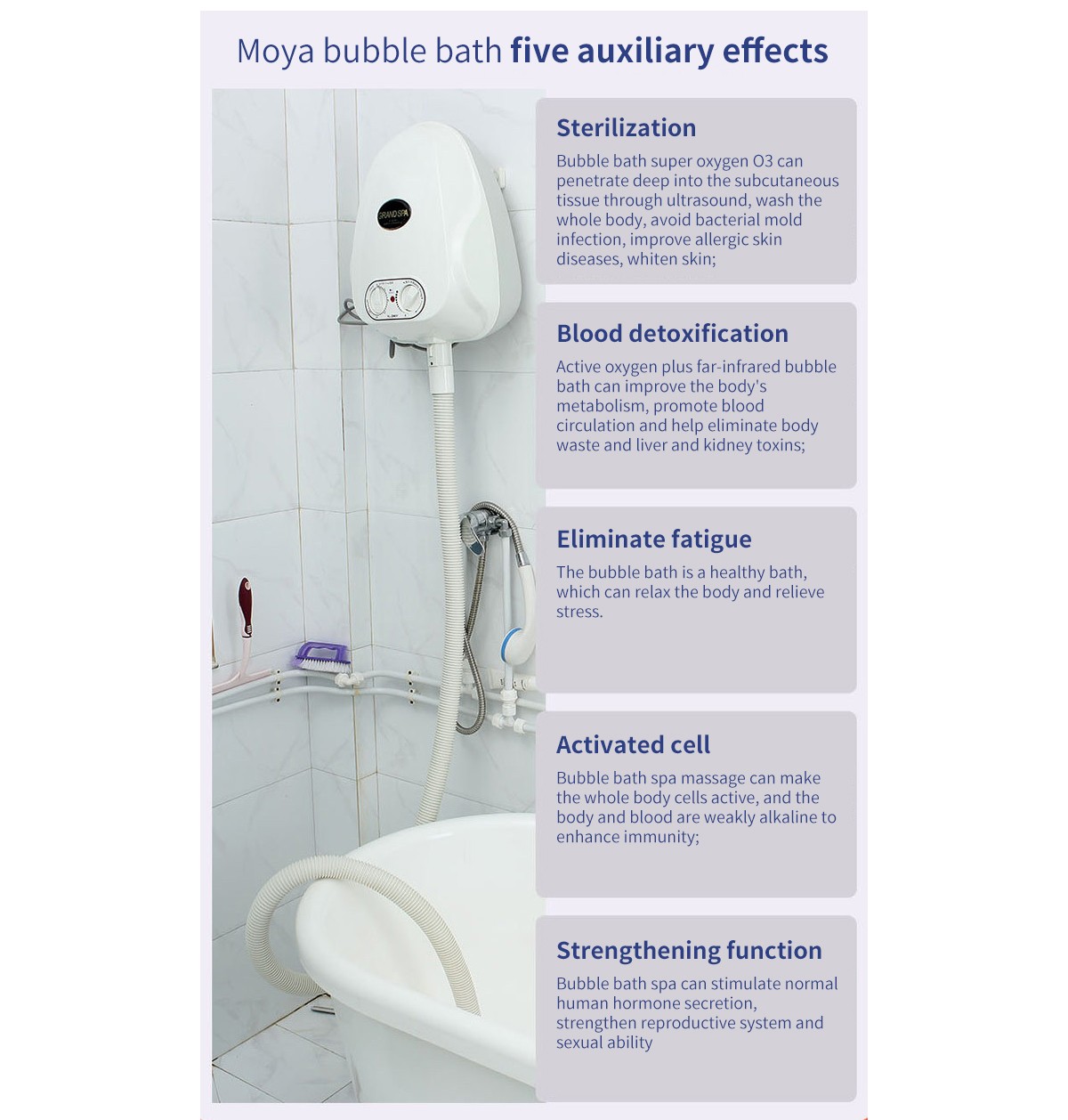 | O₃ anions | 1,000,000 O₃ bullae aereae oneratae secundo, quae qualitatem aquae balnei et aeris in balneo circumstantis meliorem efficiunt. | NIL | NIL | NIL |
